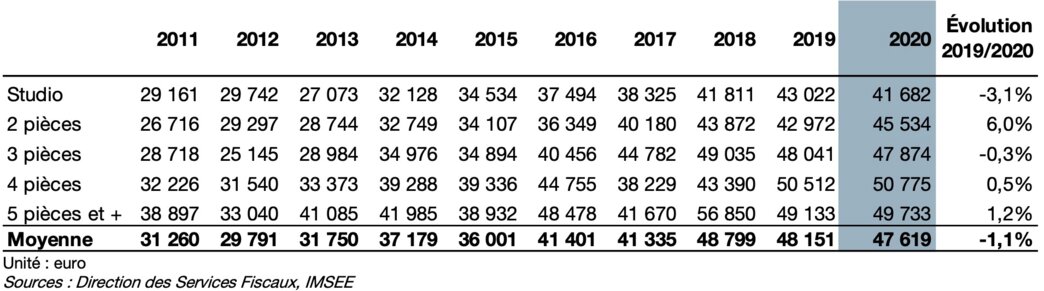 From one typology to another, 1 bedroom are the ones that have been the most appreciated between 2019 and 2020, going from €42,972 to €45,534 (+6%) contrary to the studios for which the price per square meter has fallen by 3.1% since 2019.