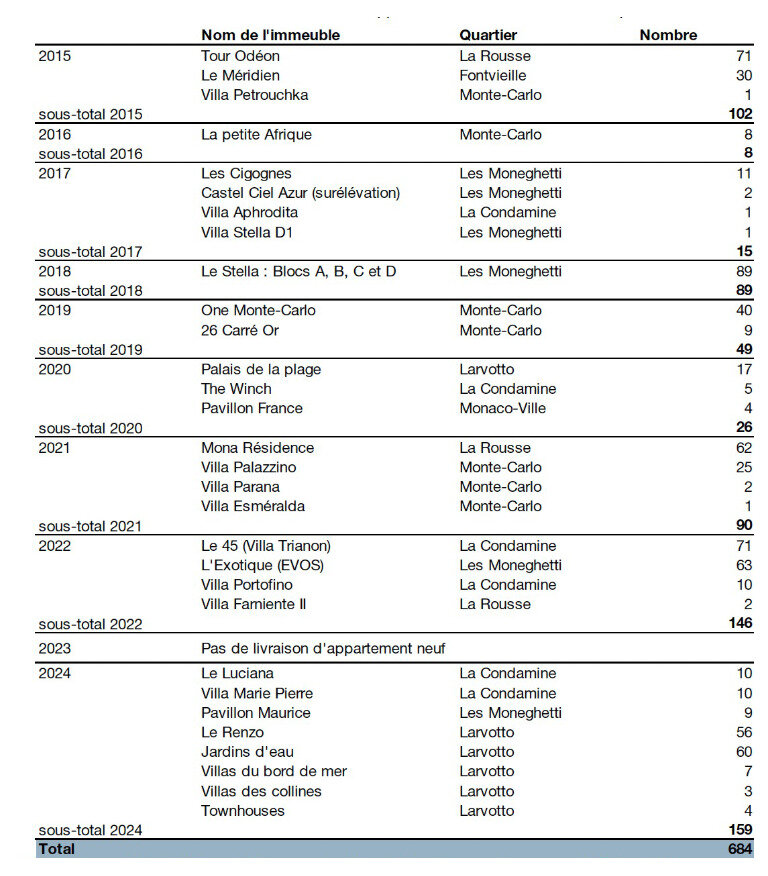 Les ventes ont également atteint un niveau inédit avec 101 transactions, un record depuis leur traçabilité. Ce chiffre dépasse les pics observés en 2015 avec la livraison de la Tour Odéon ou en 2022 avec celles du 45G et de L’Exotique.