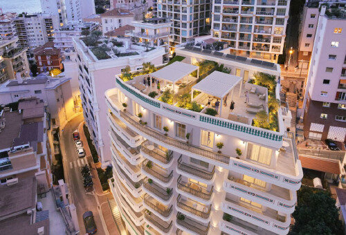 Dans le quartier des Moneghetti au 3 rue Malbousquet, résidence de grand standing à l'architecture de style "Belle époque". La façade de l’immeuble avec ses moulures décoratives, ses balustres en céramiques turquoise et ses garde-corps en fer forgé s'inscrit parfaitement avec l'architecture monégasque.