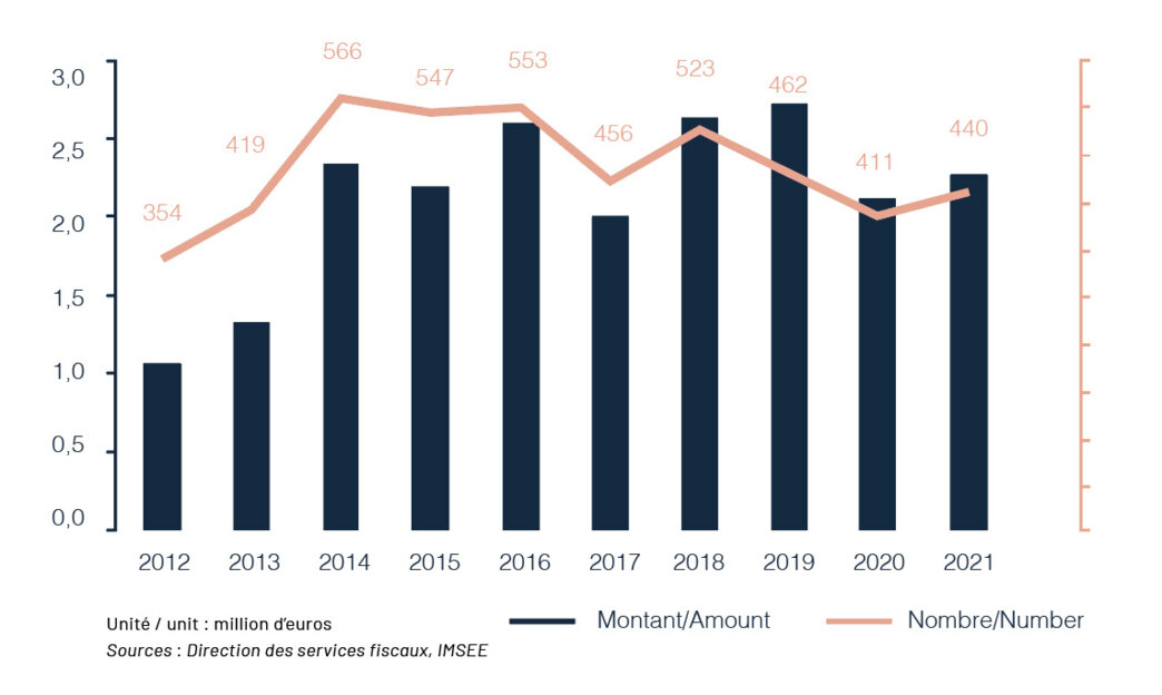 After a slowdown in 2020 and 2021, against the backdrop of the health crisis, the Monegasque property market is set to rebound again, confirming its upward trend. In terms of volume, it is up by 18.2% on 2021, with 520 transactions, and in terms of value, it has set a record with a cumulative value of €3.54 billion, representing an increase of almost 51.8%.