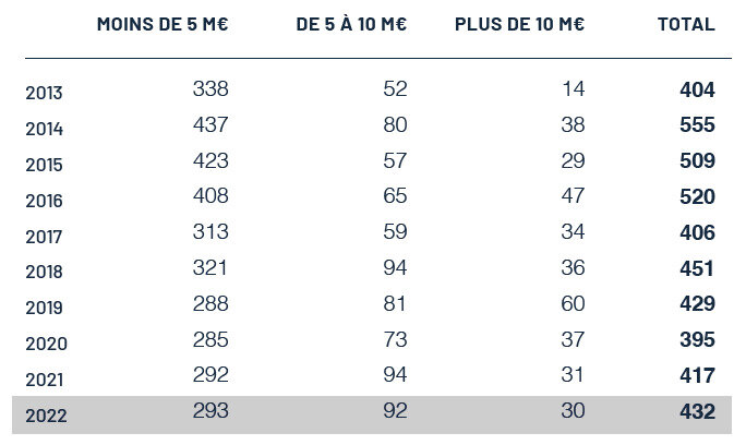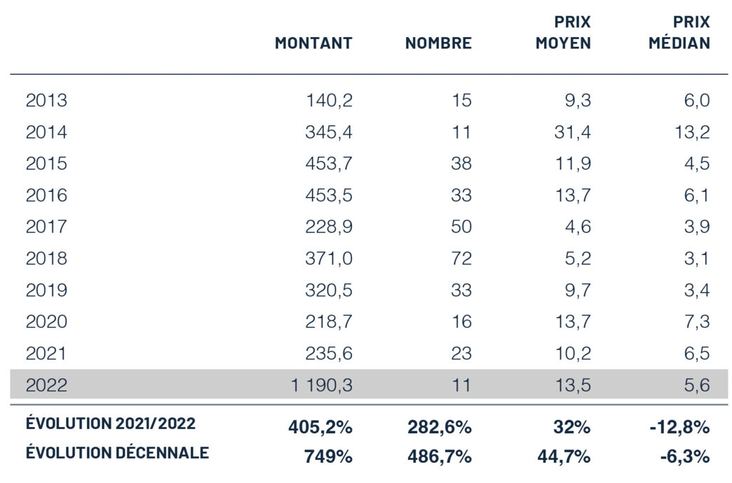For the first time, the sales market have broken the symbolic billion euro barrier (€1.19 billion), which is 4 times more than the total for 2021! The previous records were set in 2015 and 2016, when sales totalled €453 million, just 38% of the new figure.