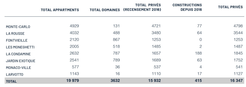 Monte-Carlo and La Rousse account for a total of 8,340 private homes, representing more than 51% of all residential properties.