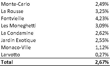 Based on the number of dwellings recorded in 2016, subtracted from the “state” apartments only reserved for Monegasques but completed with the new deliveries since then, and the whole thing compared to the real estate resales figures by district, we get the proportion of the available housing stock that is resold each year.